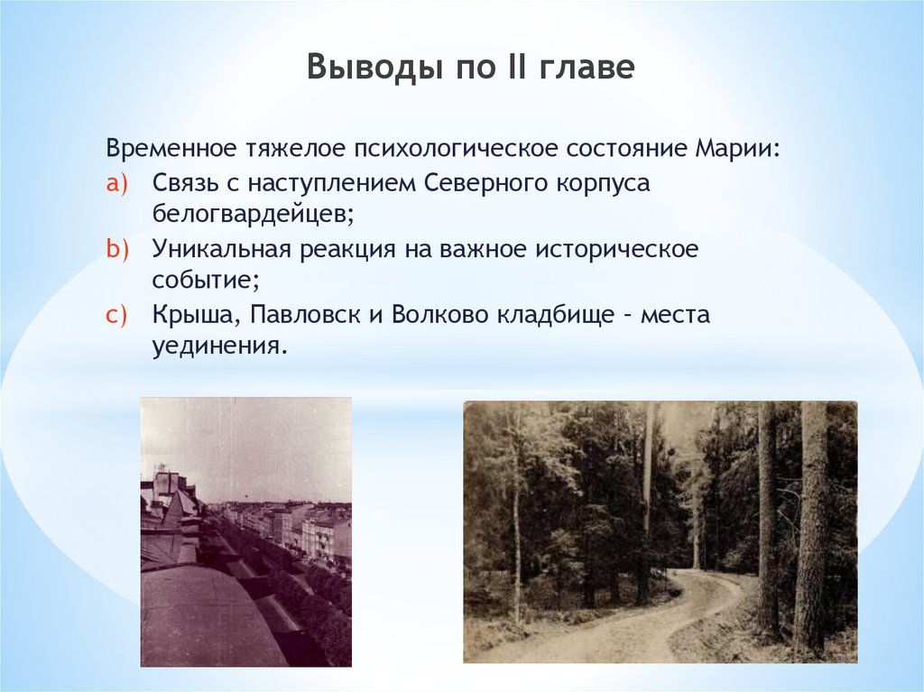 Выводы по II главеВременное тяжелое психологическое состояние Марии: