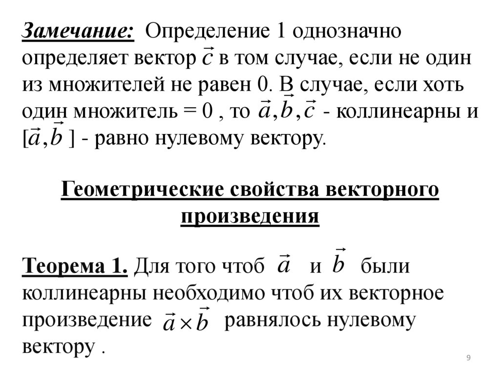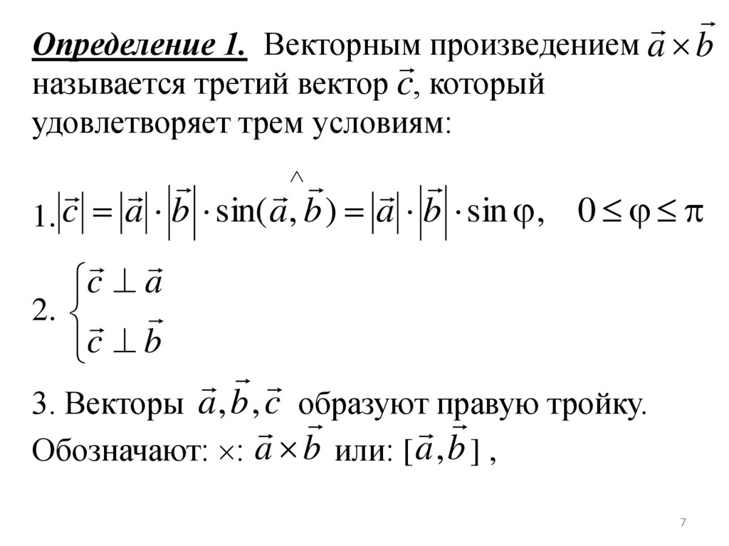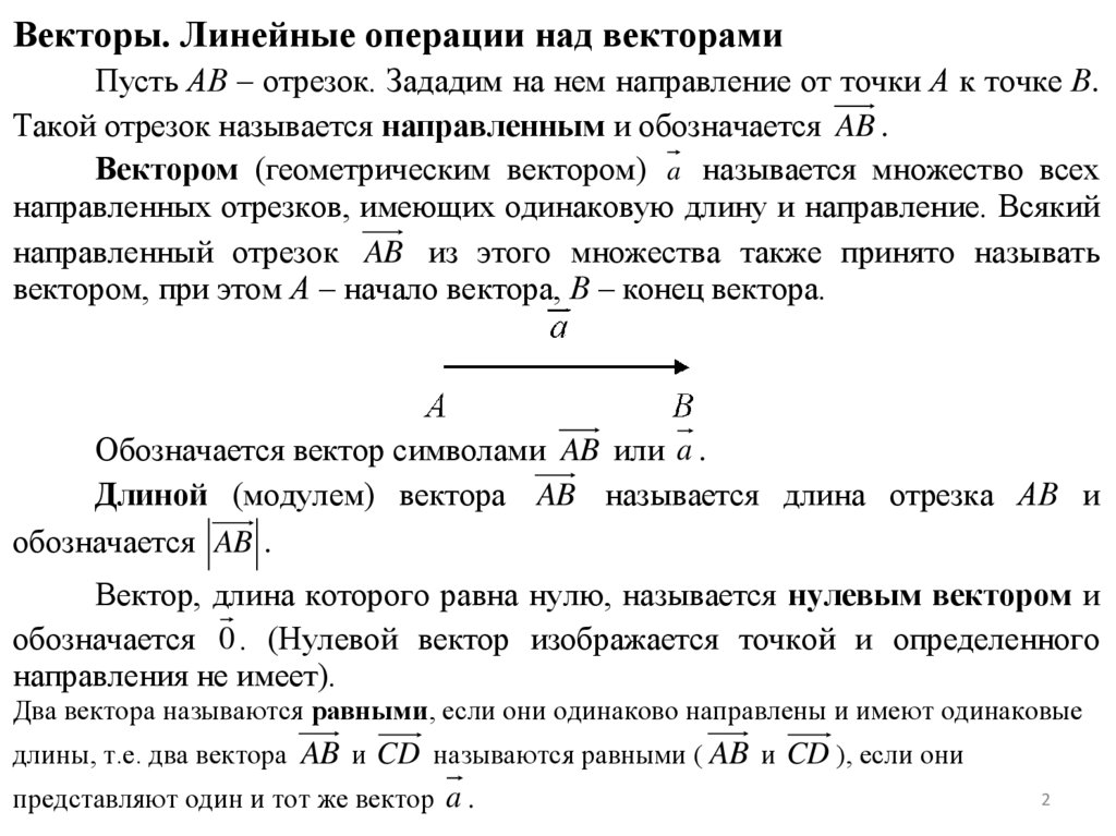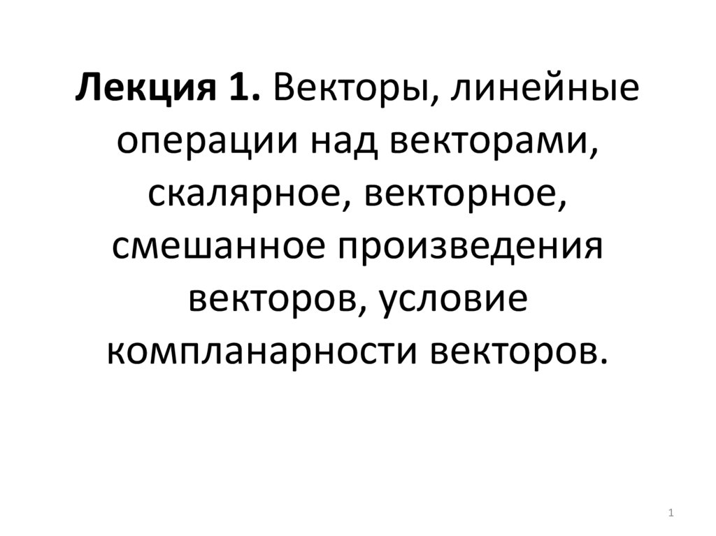 1. Лекция 1. Векторы, линейные операции над векторами, скалярное, векторное, смешанное произведения векторов, условие