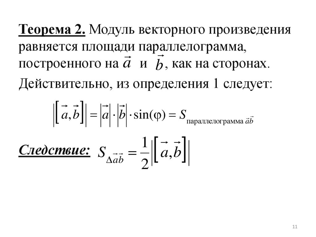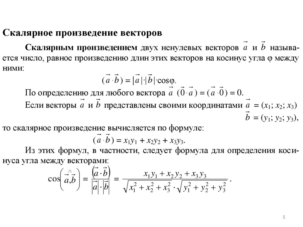 Из этих формул, в частности, следует формула для определения косинуса угла между векторами: