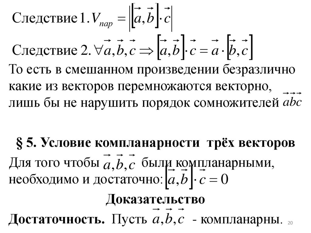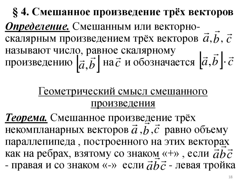 § 4. Смешанное произведение трёх векторовОпределение. Смешанным или векторно-