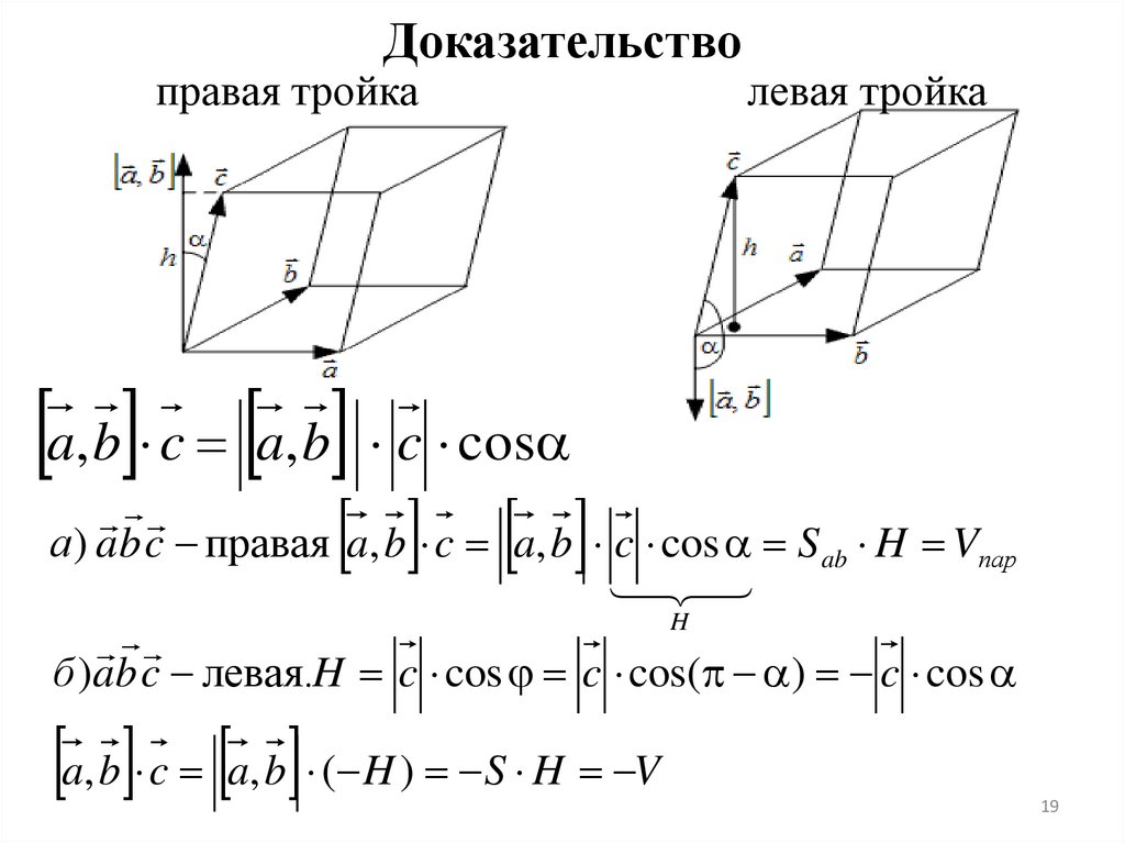 а) ab c правая a, b c a, b c cos S ab H Vпар