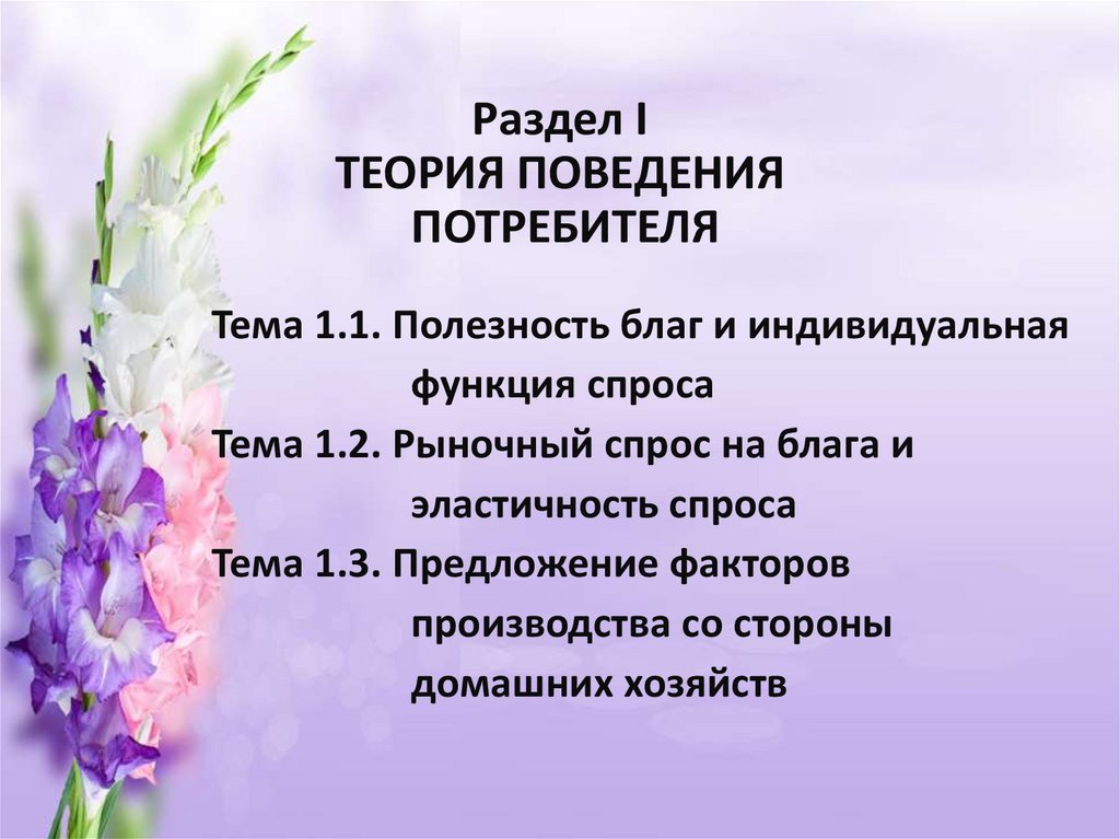 1. Раздел I ТЕОРИЯ ПОВЕДЕНИЯ ПОТРЕБИТЕЛЯ