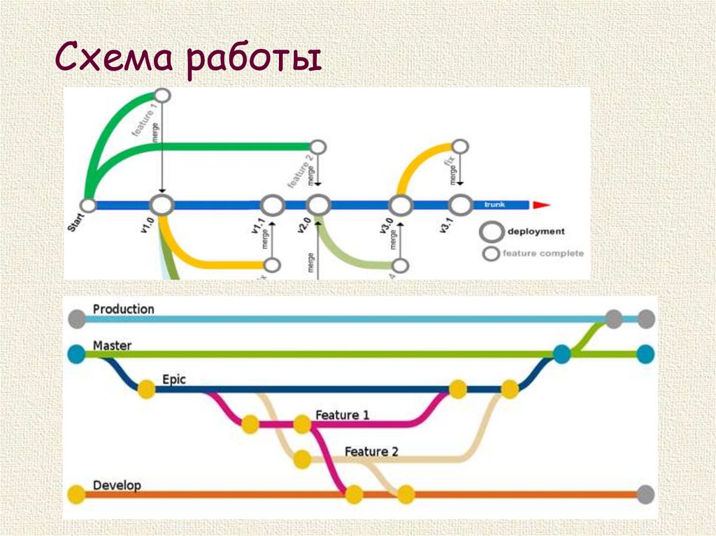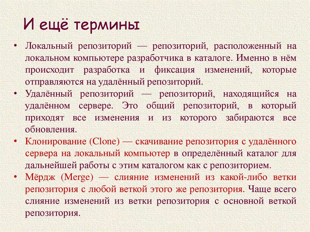 • Мёрдж (Merge) — слияние изменений из какой-либо ветки