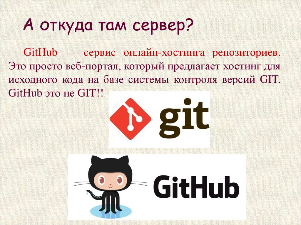 А откуда там сервер?GitHub — сервис онлайн-хостинга репозиториев.