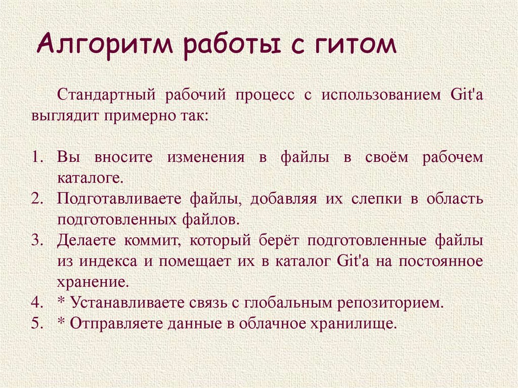 Алгоритм работы с гитомСтандартный рабочий процесс с использованием Git'а