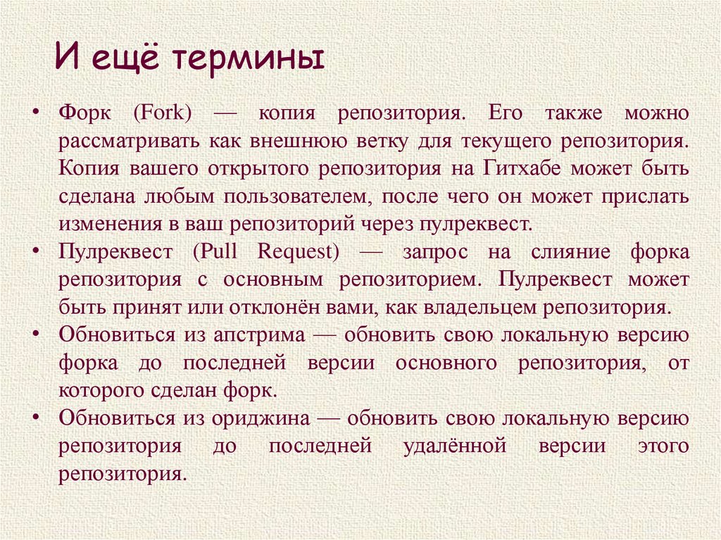 • Пулреквест (Pull Request) — запрос на слияние форка