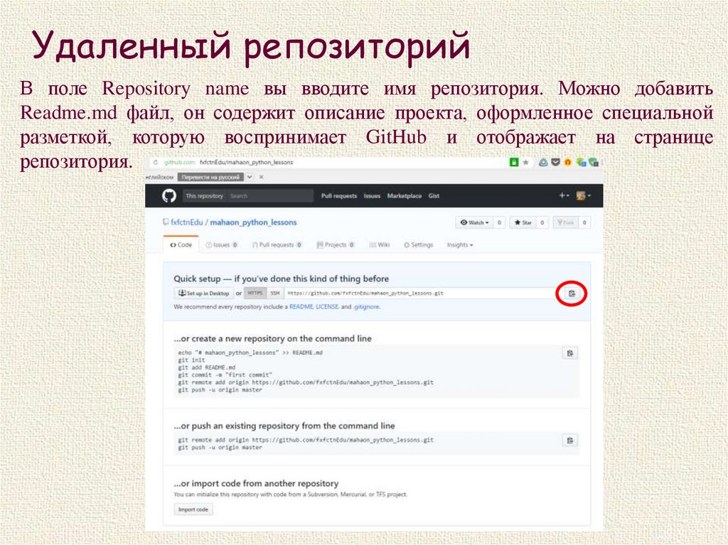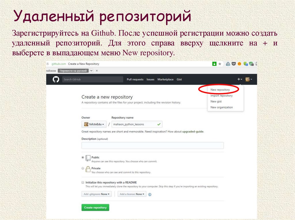 удаленный репозиторий. Для этого справа вверху щелкните на + и