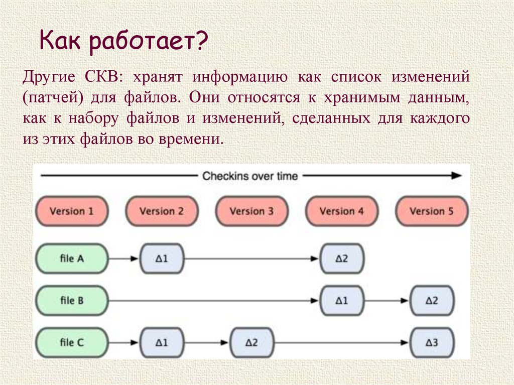 Как работает?Другие СКВ: хранят информацию как список изменений