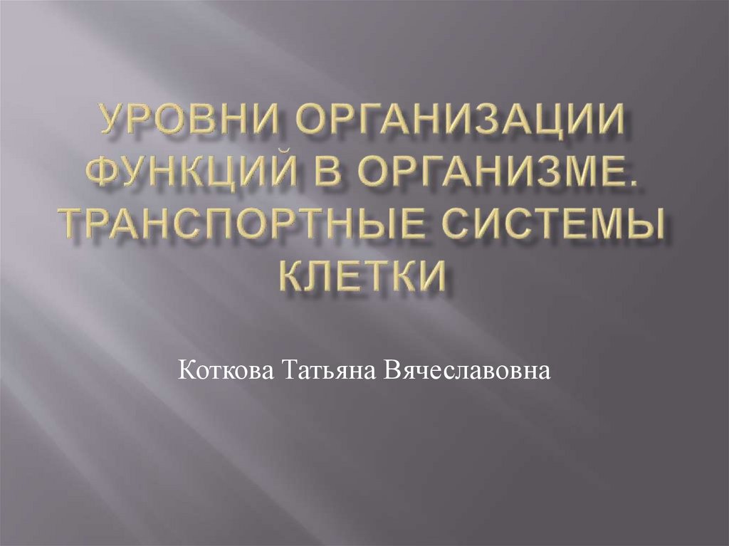 1. Уровни организации функций в организме. Транспортные системы клетки