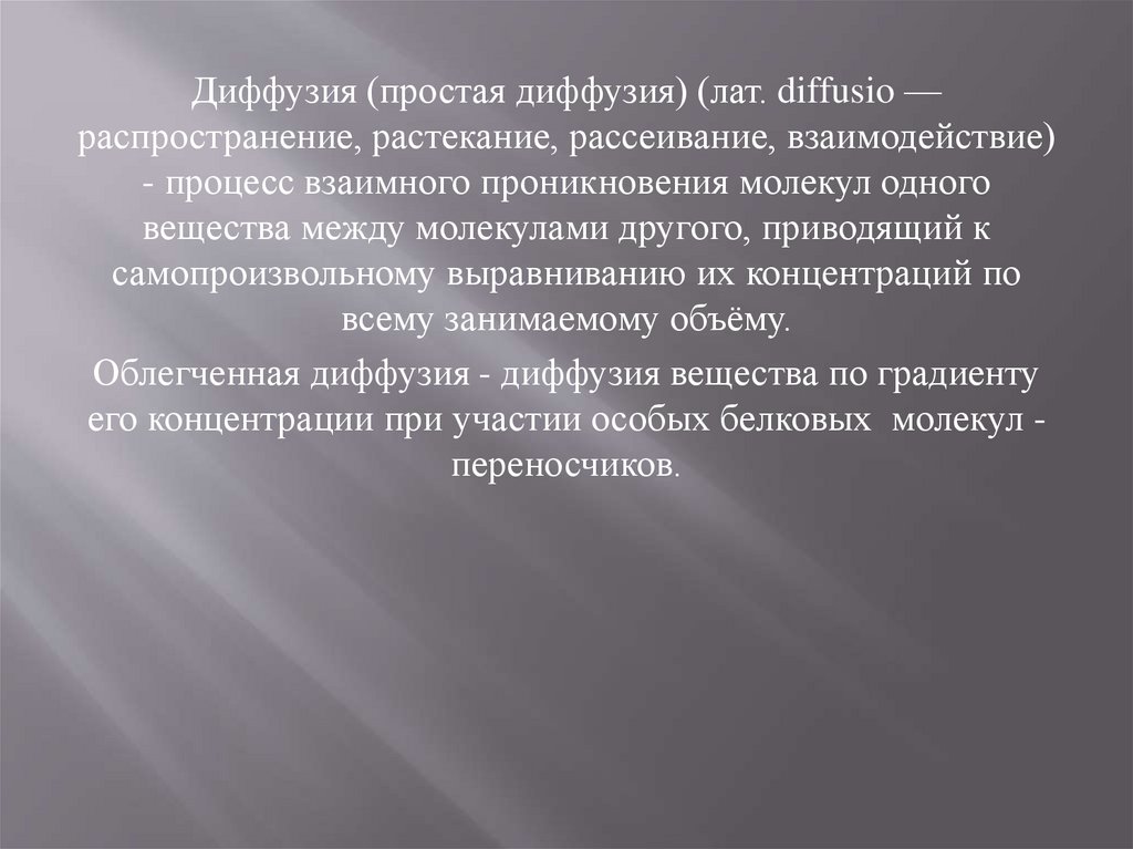 Облегченная диффузия - диффузия вещества по градиенту