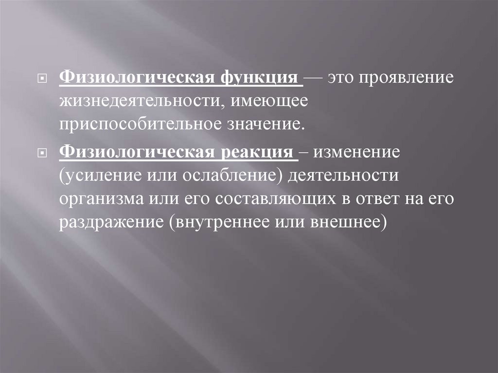 Физиологическая функция — это проявлениежизнедеятельности, имеющее