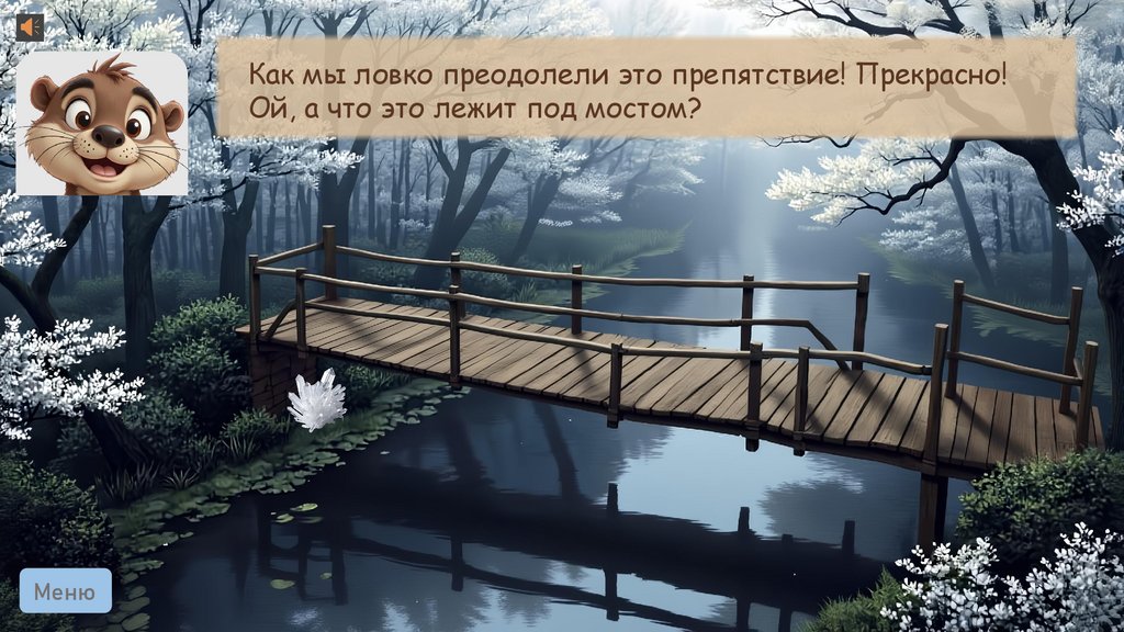 Следующий кристалл где-то за мостом, но мостволшебный! Чтобы по нему пройти, нужно называть