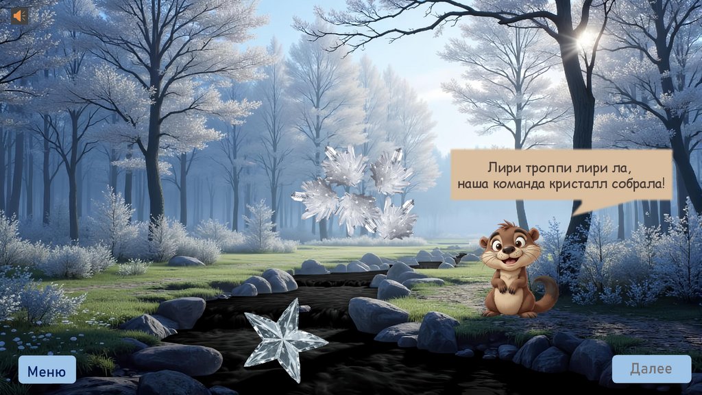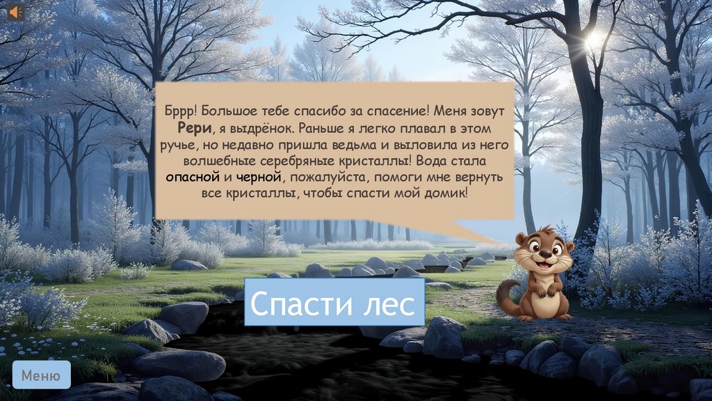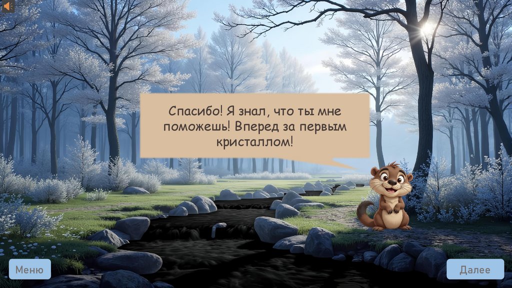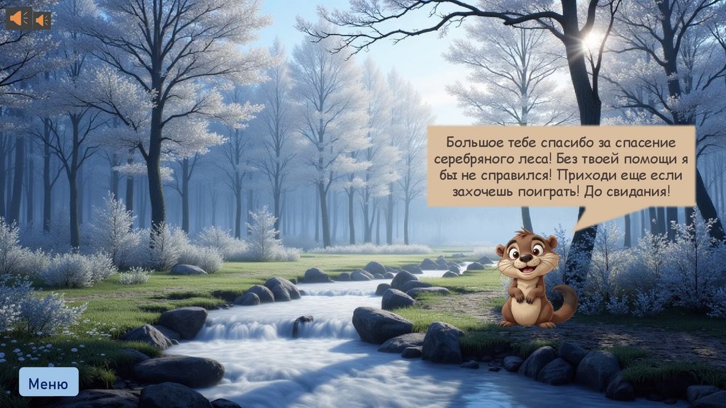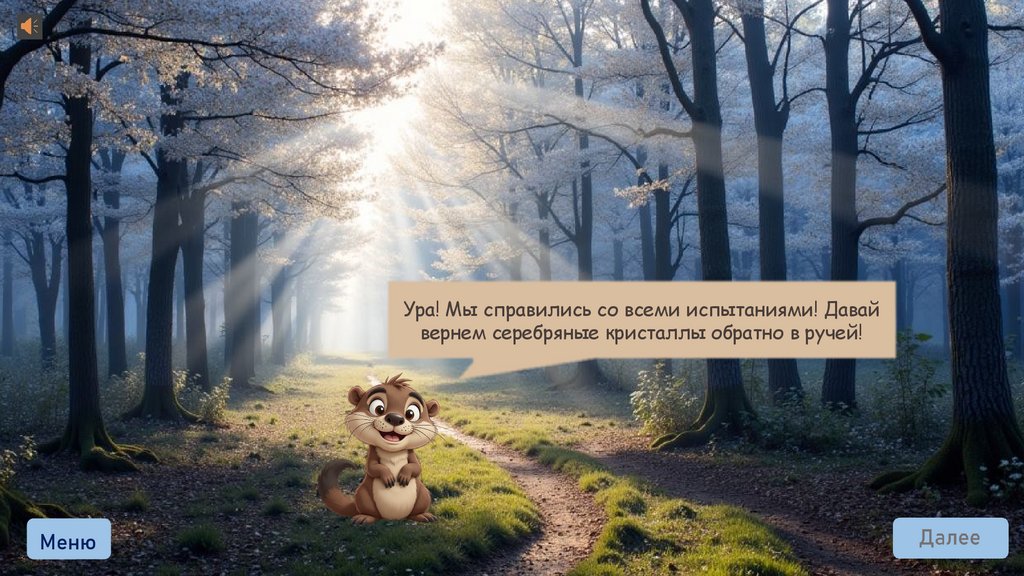 Ура! Мы справились со всеми испытаниями! Давайвернем серебряные кристаллы обратно в ручей!