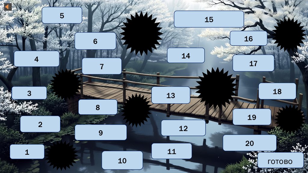 Перед каждой игрой создан слайд со звуковым сопровождением обьяснения правил игры. Нажмите на клавишу