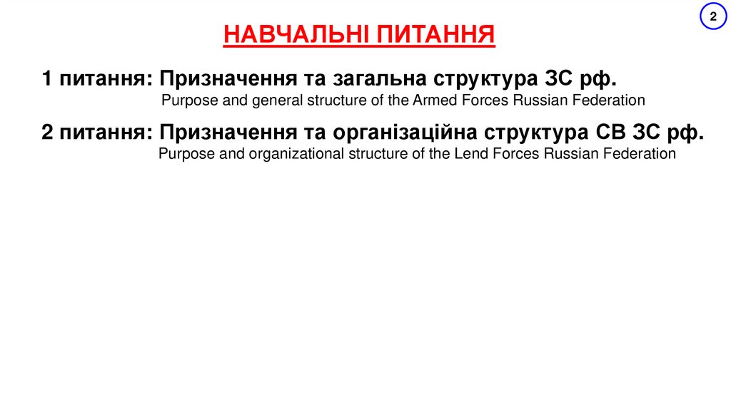 НАВЧАЛЬНІ ПИТАННЯ1 питання: Призначення та загальна структура ЗС рф.