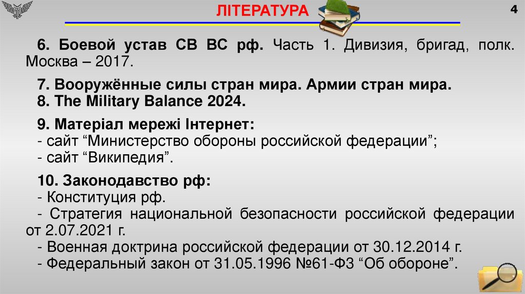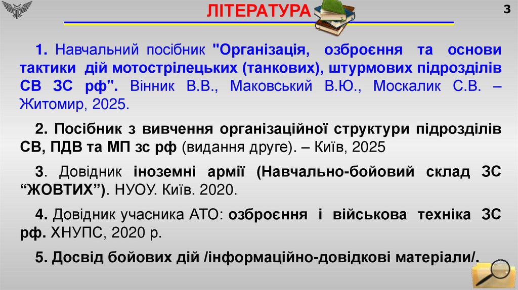 ЛІТЕРАТУРА1. Навчальний посібник "Організація, озброєння та основи
