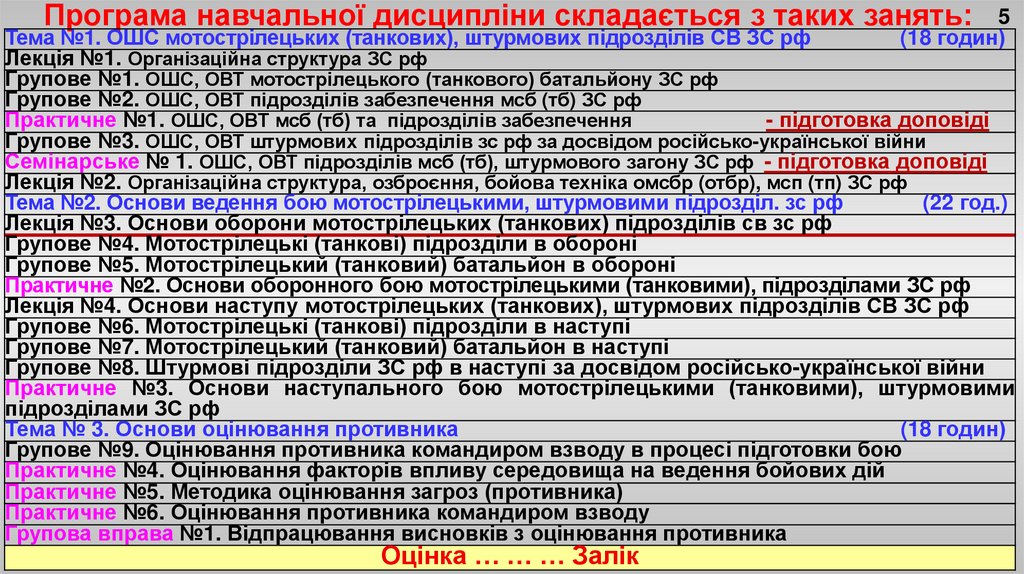 Тема №1. ОШС мотострілецьких (танкових), штурмових підрозділів СВ ЗС рф