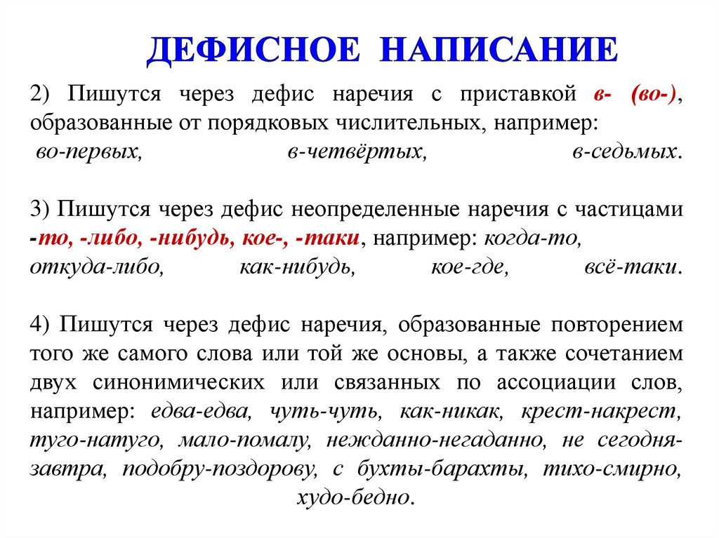 2) Пишутся через дефис наречия с приставкой в- (во-),образованные от порядковых числительных, например: