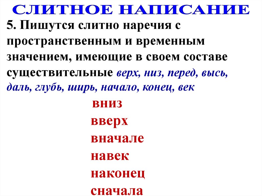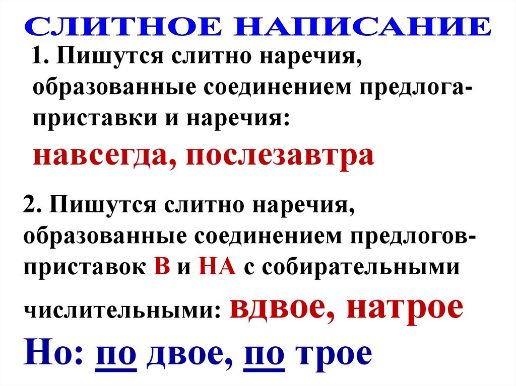 1. Пишутся слитно наречия,образованные соединением предлогаприставки и наречия: