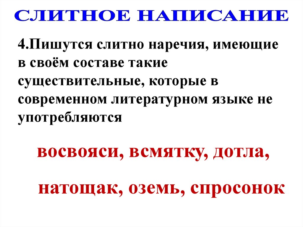 4.Пишутся слитно наречия, имеющиев своём составе такие