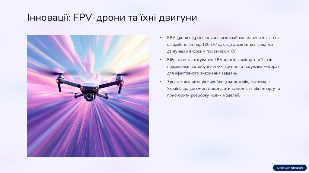 Інновації: FPV-дрони та їхні двигуниF P V-дрони відрізняються надзвичайною маневреністю та