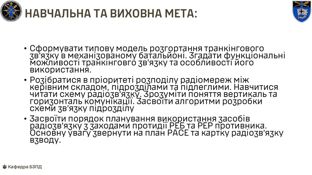 НАВЧАЛЬНА ТА ВИХОВНА МЕТА:• Сформувати типову модель розгортання транкінгового