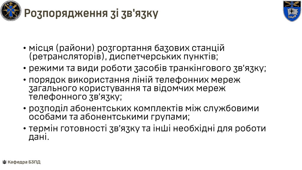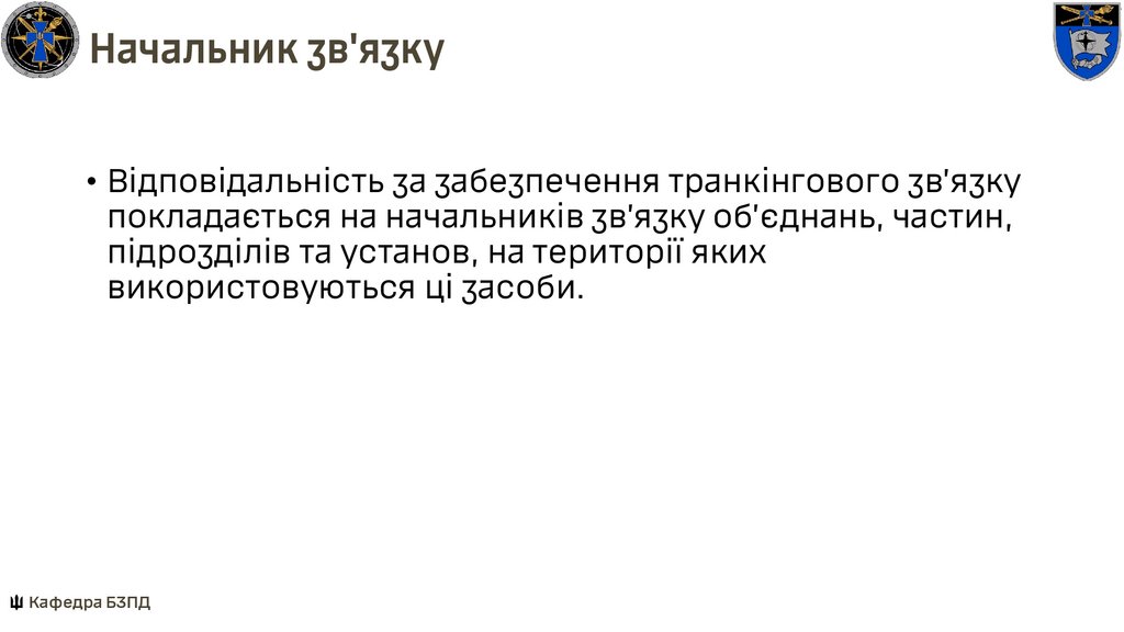• 7. На кого покладається відповідальність за забезпечення зв’язку?