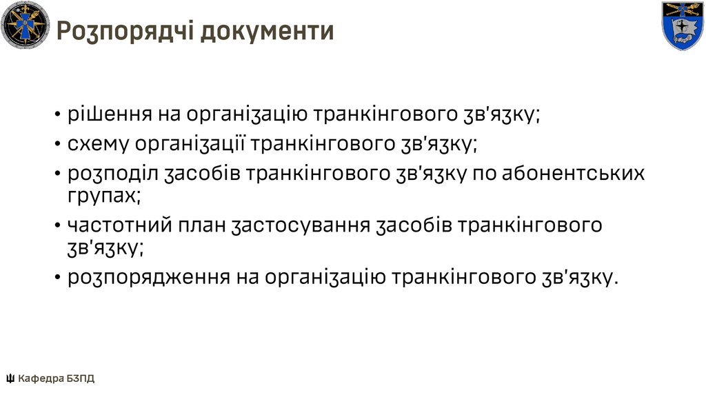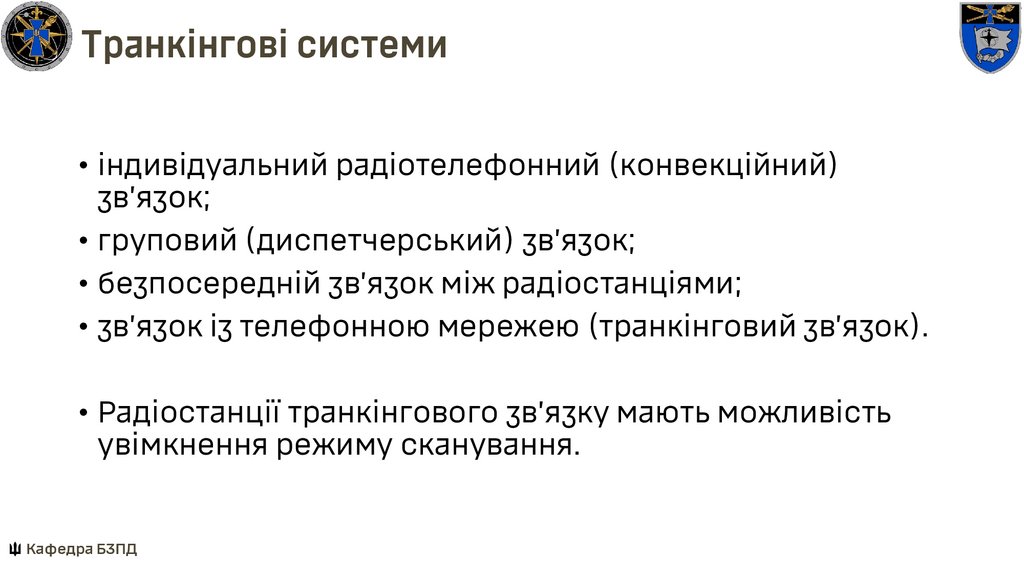 • 4. Що входить до комплекту транкінгового зв’язку механізованого (танкового)