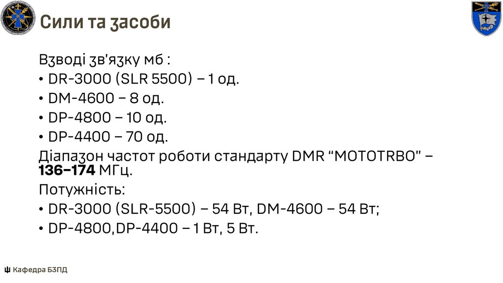 • 3. Назвіть сили і засоби зв’язку механізованого батальйону.