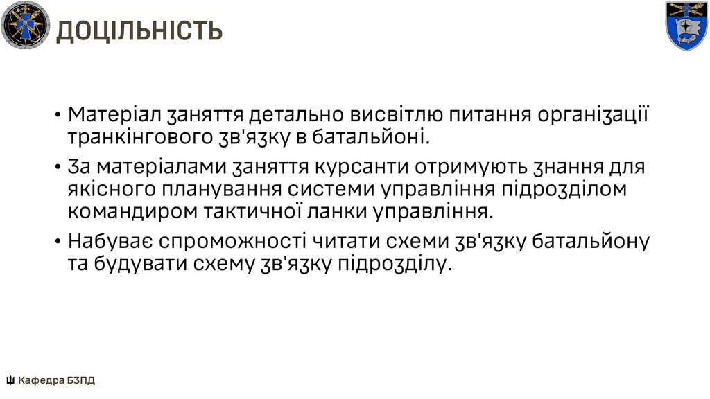 ДОЦІЛЬНІСТЬ• Матеріал заняття детально висвітлю питання організації