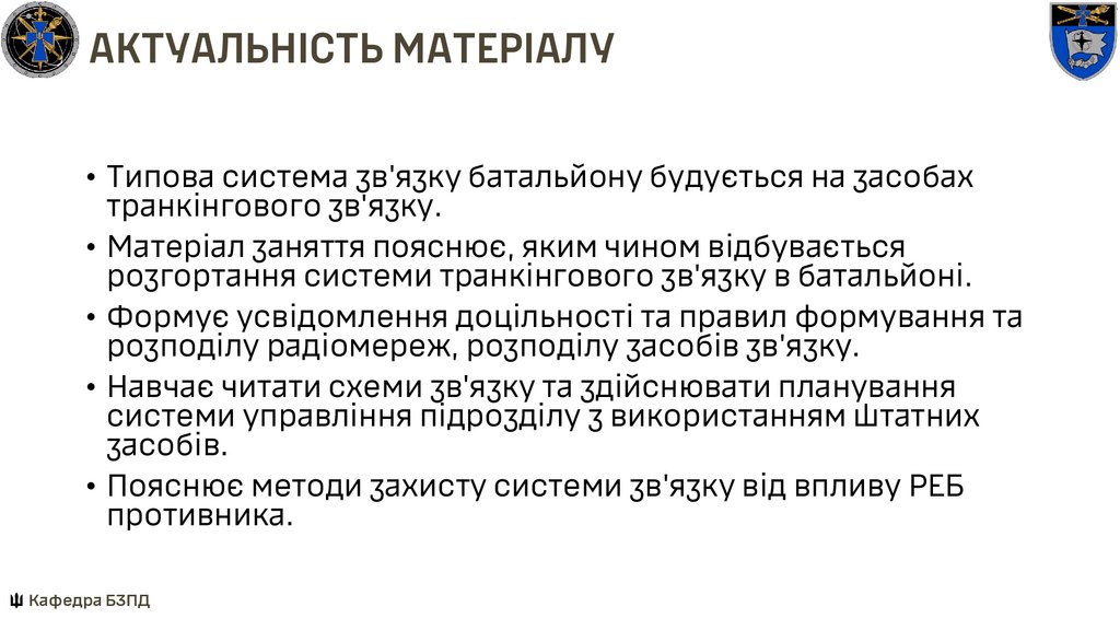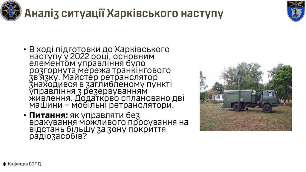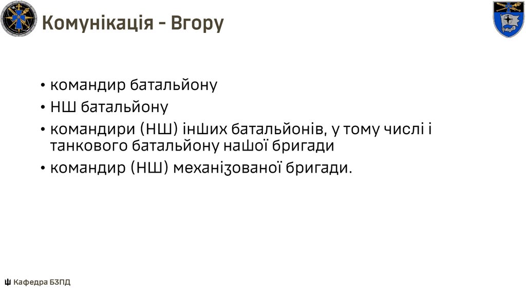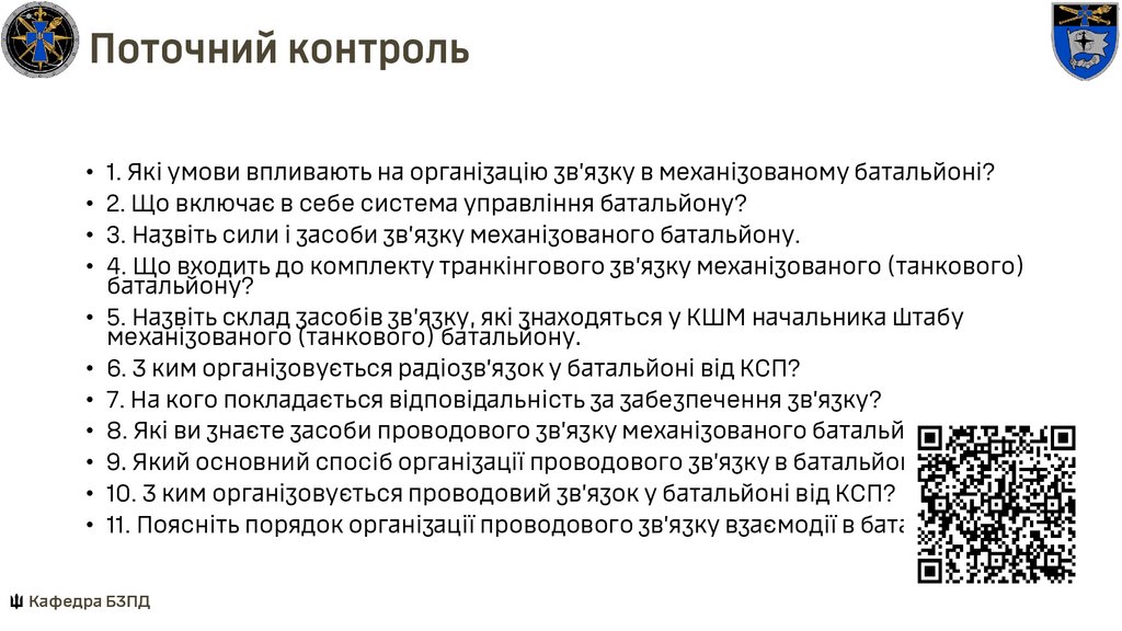 Поточний контроль• 1. Які умови впливають на організацію зв’язку в механізованому батальйоні?
