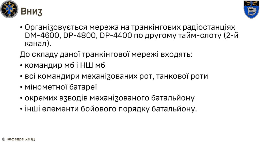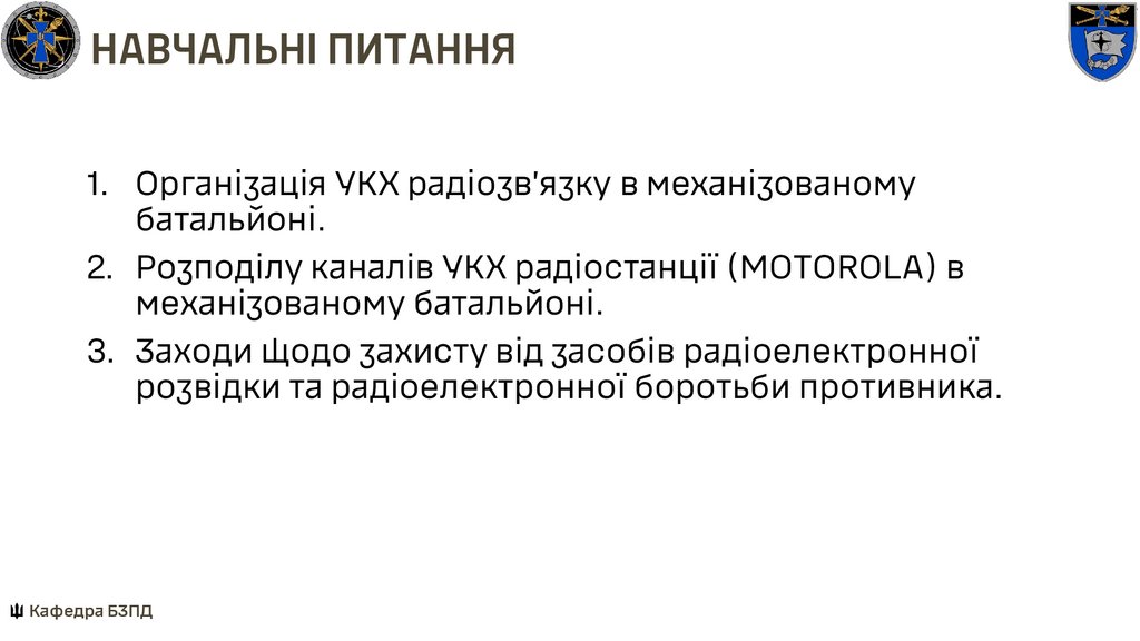 НАВЧАЛЬНІ ПИТАННЯ1. Організація УКХ радіозв’язку в механізованому