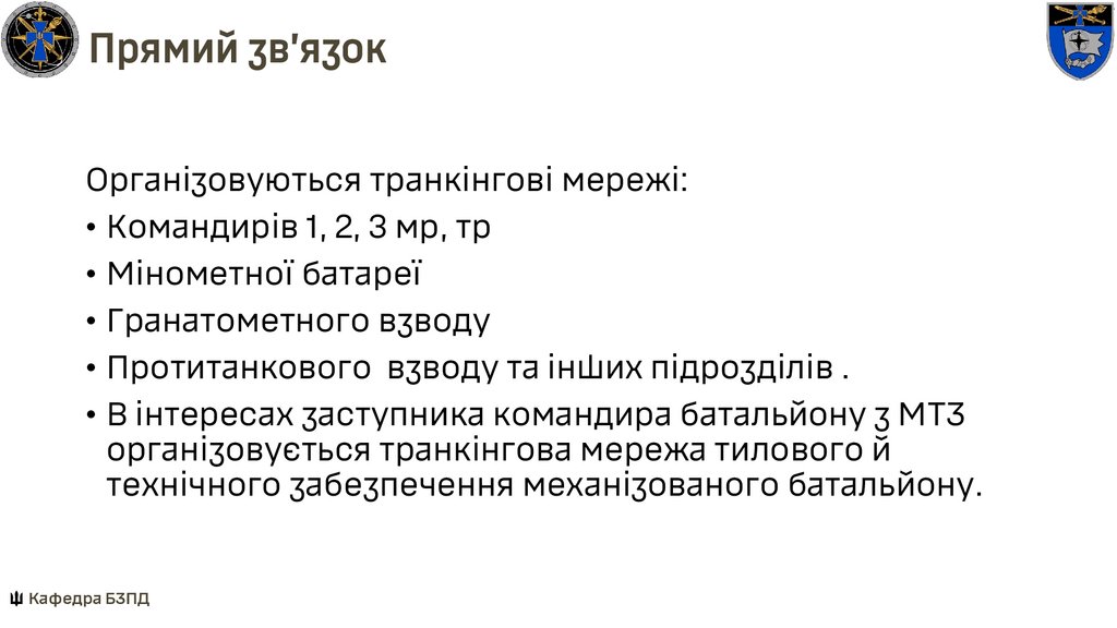 зв’язку в механізованому батальйоні. Згадати функціональні