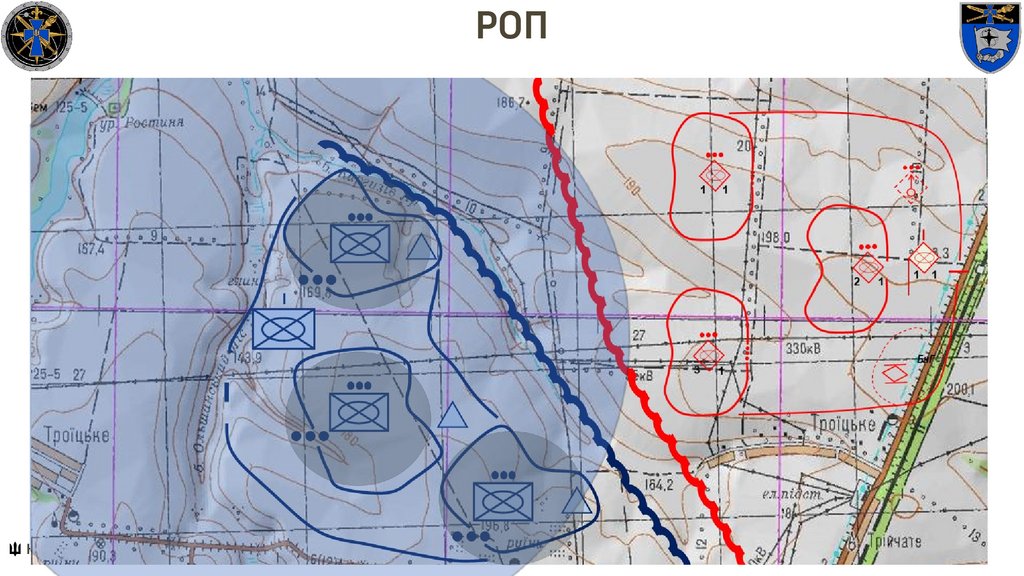 • Враховуючи технічні можливості, рельєф місцевості та бойову