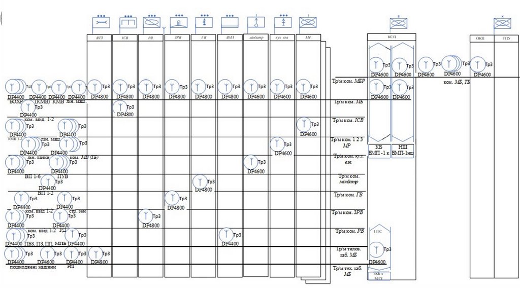 • всі командири знаходяться на прямих каналах, ретранслятор – для