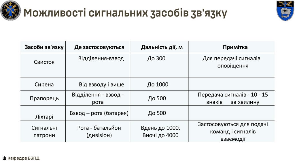 • Резервний спосіб з використанням елементів системи зв'язку батальйону;