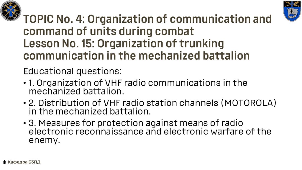 TOPIC No. 4: Organization of communication andcommand of units during combat