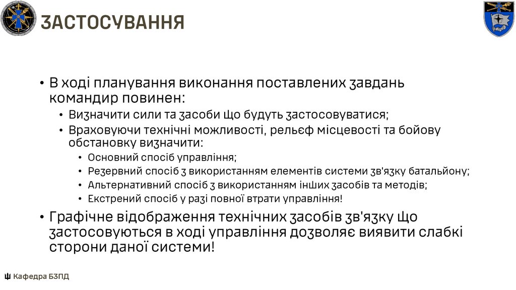 ЗАСТОСУВАННЯ• В ході планування виконання поставлених завдань