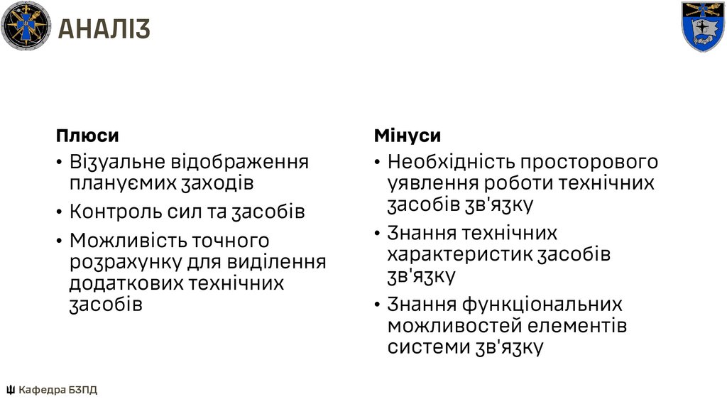 Висновок:• Аналіз місцевості, мінімізація радіовипроміненння та