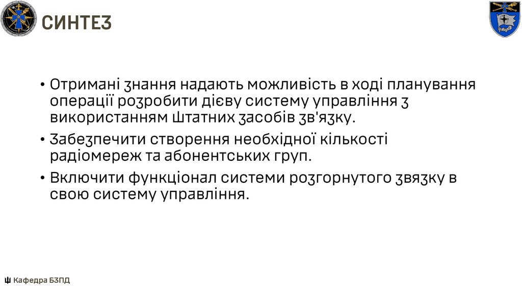 СИНТЕЗ• Отримані знання надають можливість в ході планування