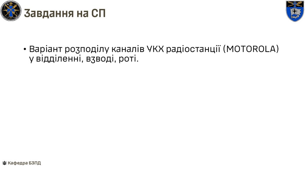 Завдання на СП• Варіант розподілу каналів УКХ радіостанції (MOTOROLA)