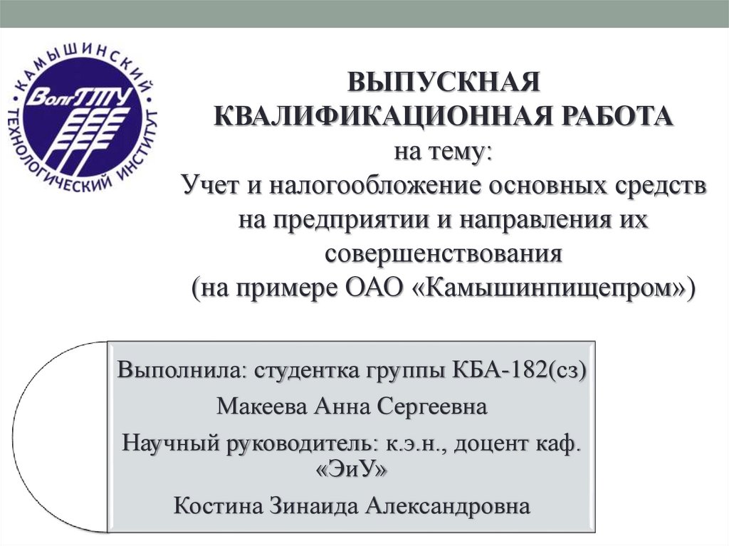 Научный руководитель: к.э.н., доцент каф.