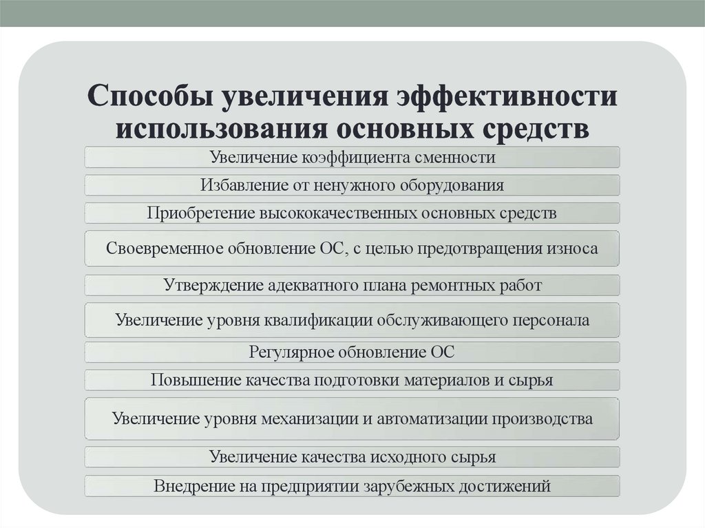 Увеличение коэффициента сменностиИзбавление от ненужного оборудования