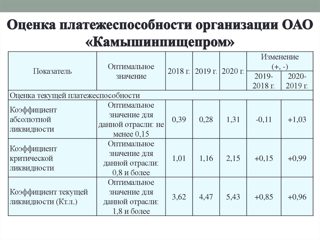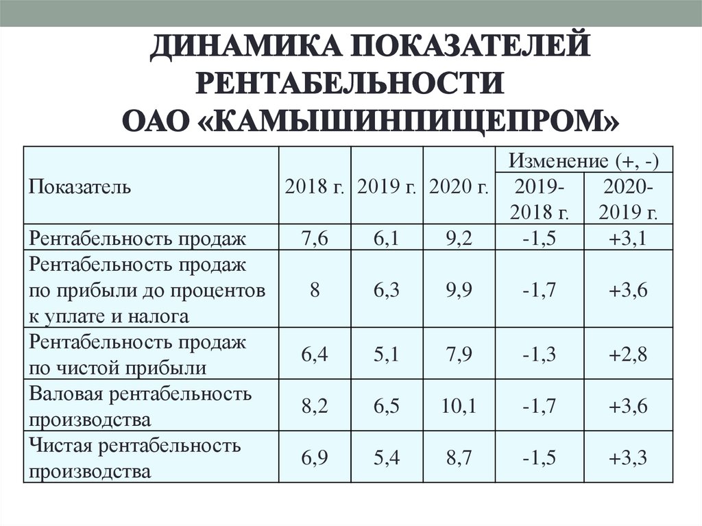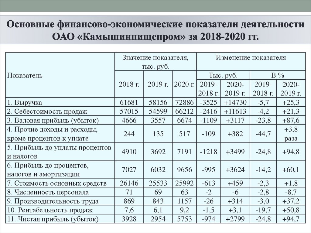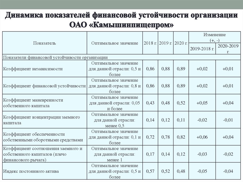 Изменение показателяЗначение показателя,