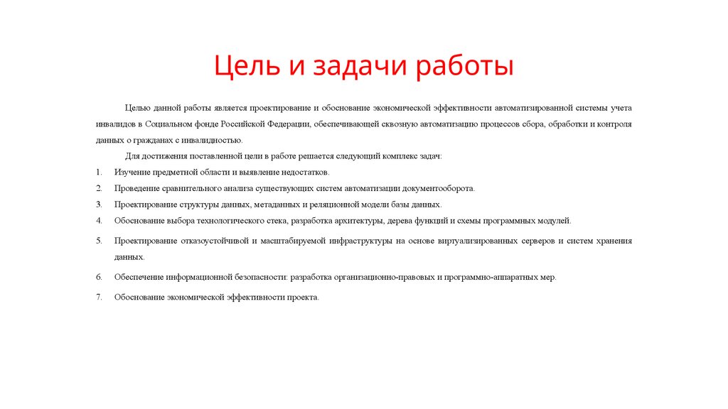 Цель и задачи работыЦелью данной работы является проектирование и обоснование экономической эффективности автоматизированной системы учета