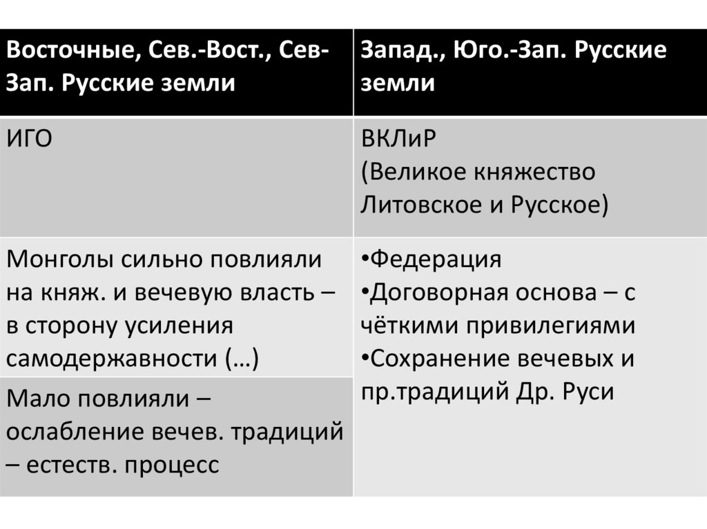 Восточные, Сев.-Вост.,Сев.-Зап. Русские земли