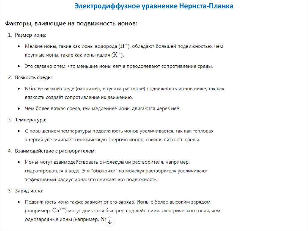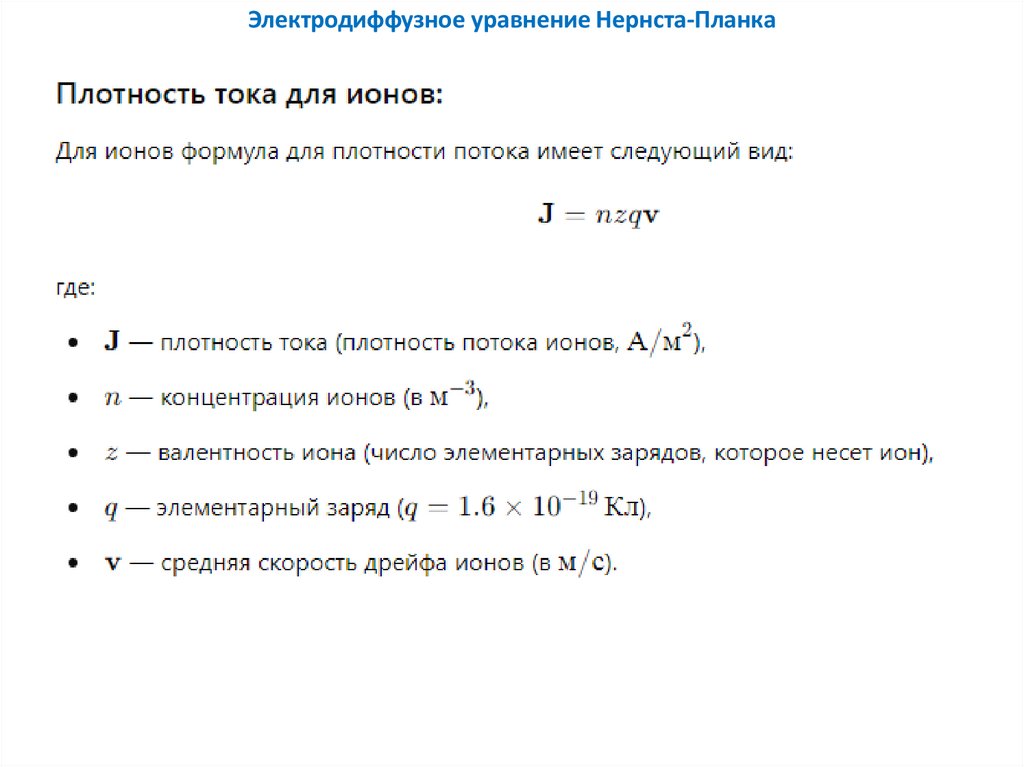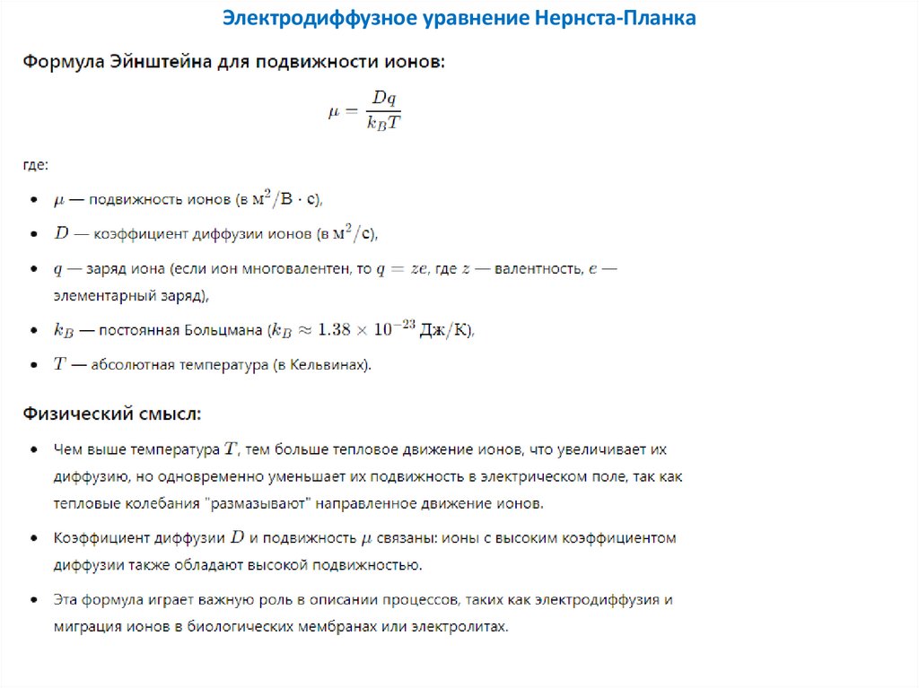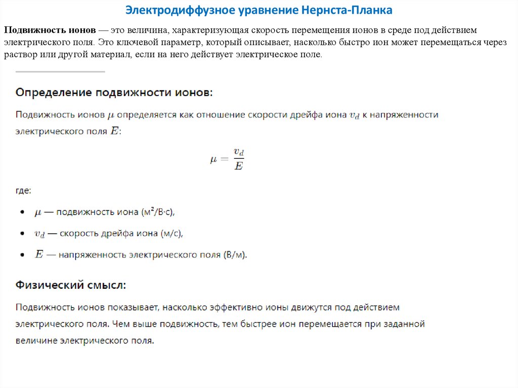 Электродиффузное уравнение Нернста-ПланкаПодвижность ионов — это величина, характеризующая скорость перемещения ионов в среде под действием
