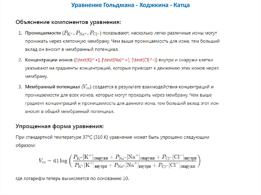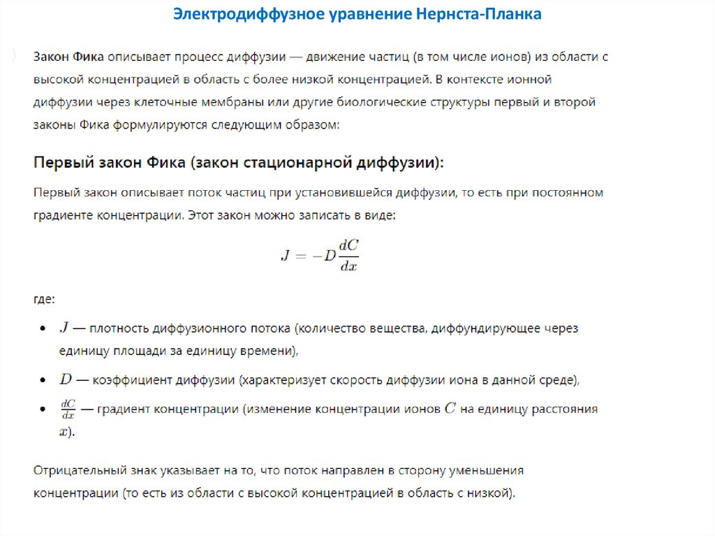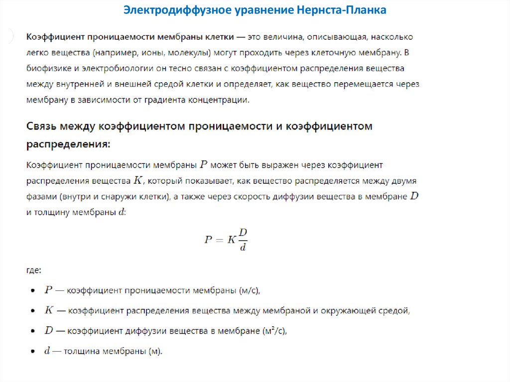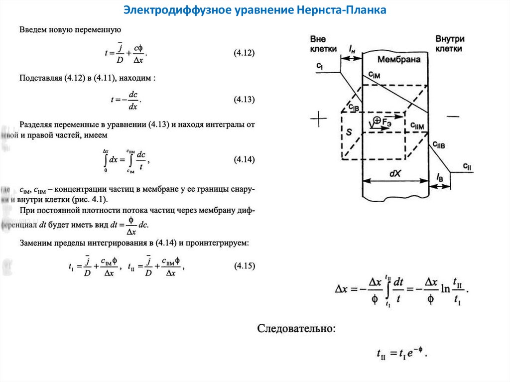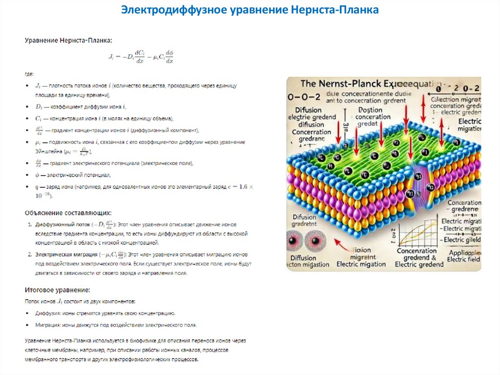 Электродиффузное уравнение Нернста-ПланкаПотенциал покоя клетки — это разность электрических потенциалов между внутренней и внешней сторонами