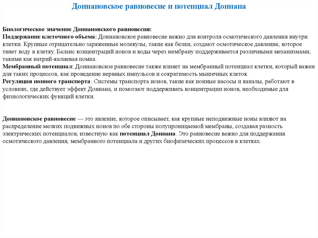 Доннановское равновесие и потенциал ДоннанаБиологическое значение Доннановского равновесия:
