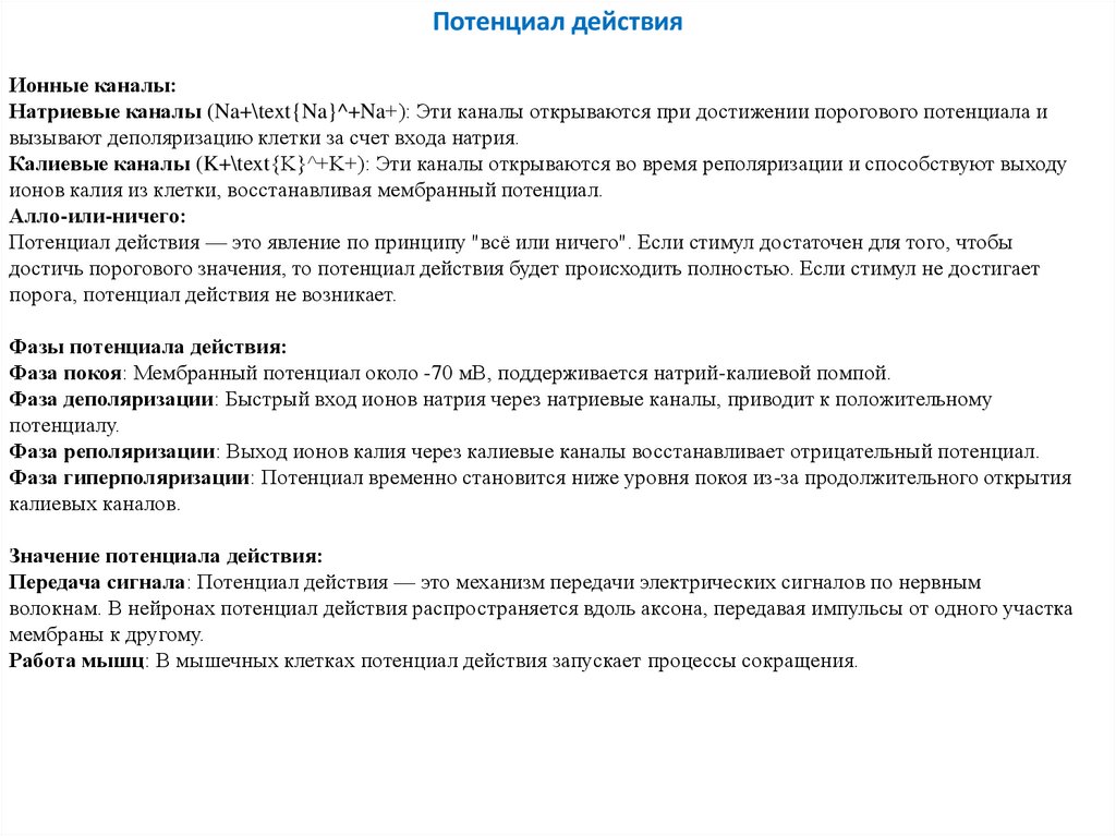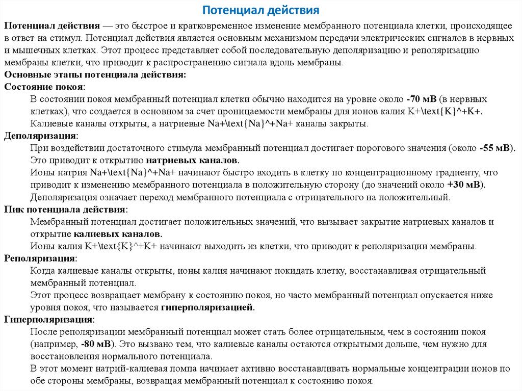 Причина: Когда потенциал действия достигает пика и натриевые каналы активируются, они затем быстро переходят в